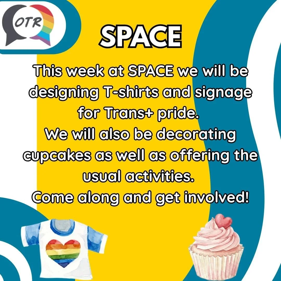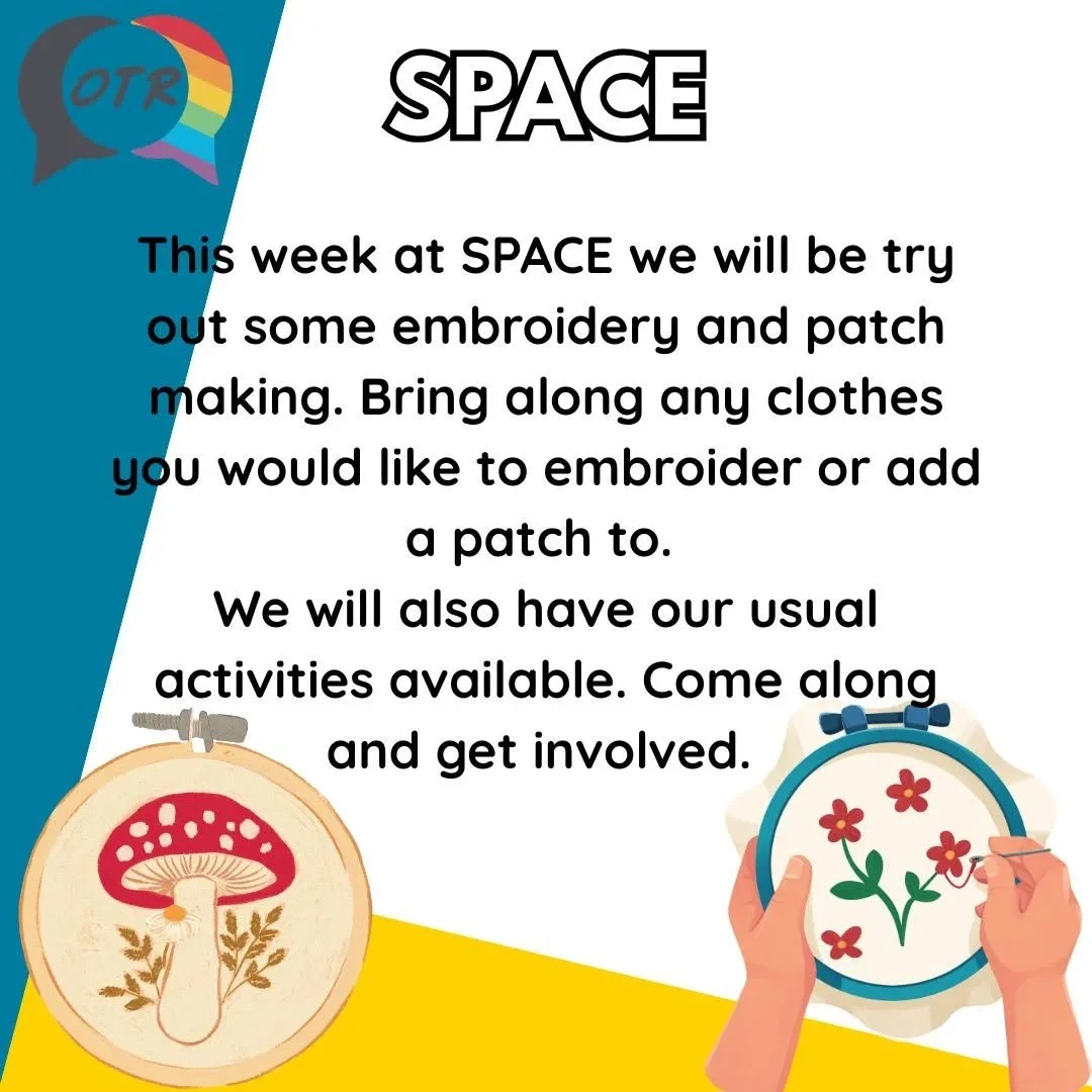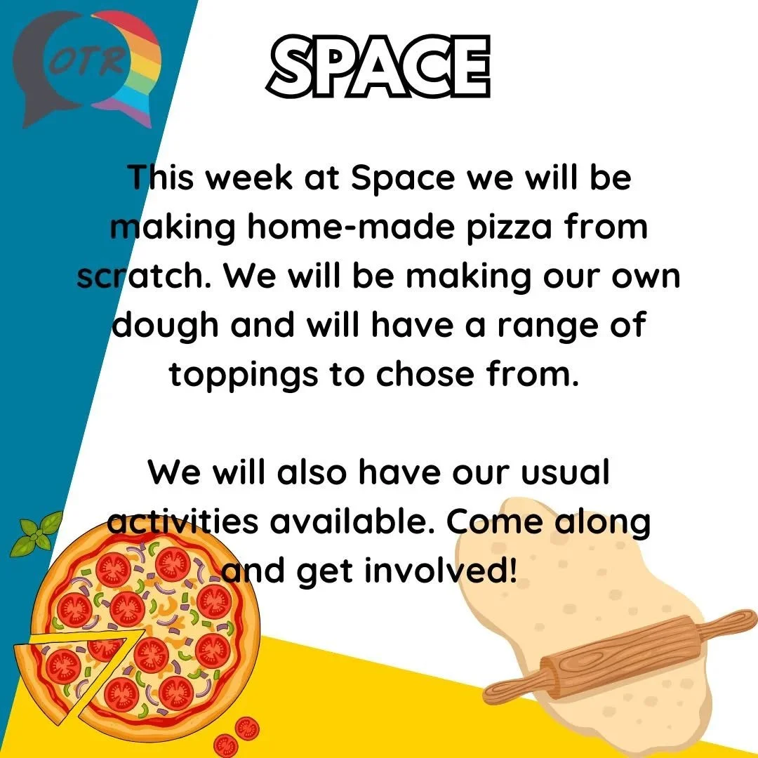 SPACE is a safe environment that you can be yourself in and get information and support on LGBTQ+ issues. It is a chance to meet and make new friends. We chat, cook, have fun, play games, get involved with local community projects, raise awareness and celebrate key events on LGBTQ+ calendar we also invite guest speakers, go on trips and so much more!