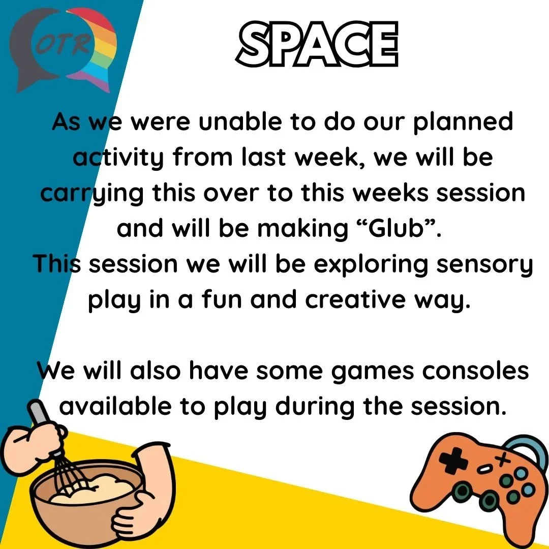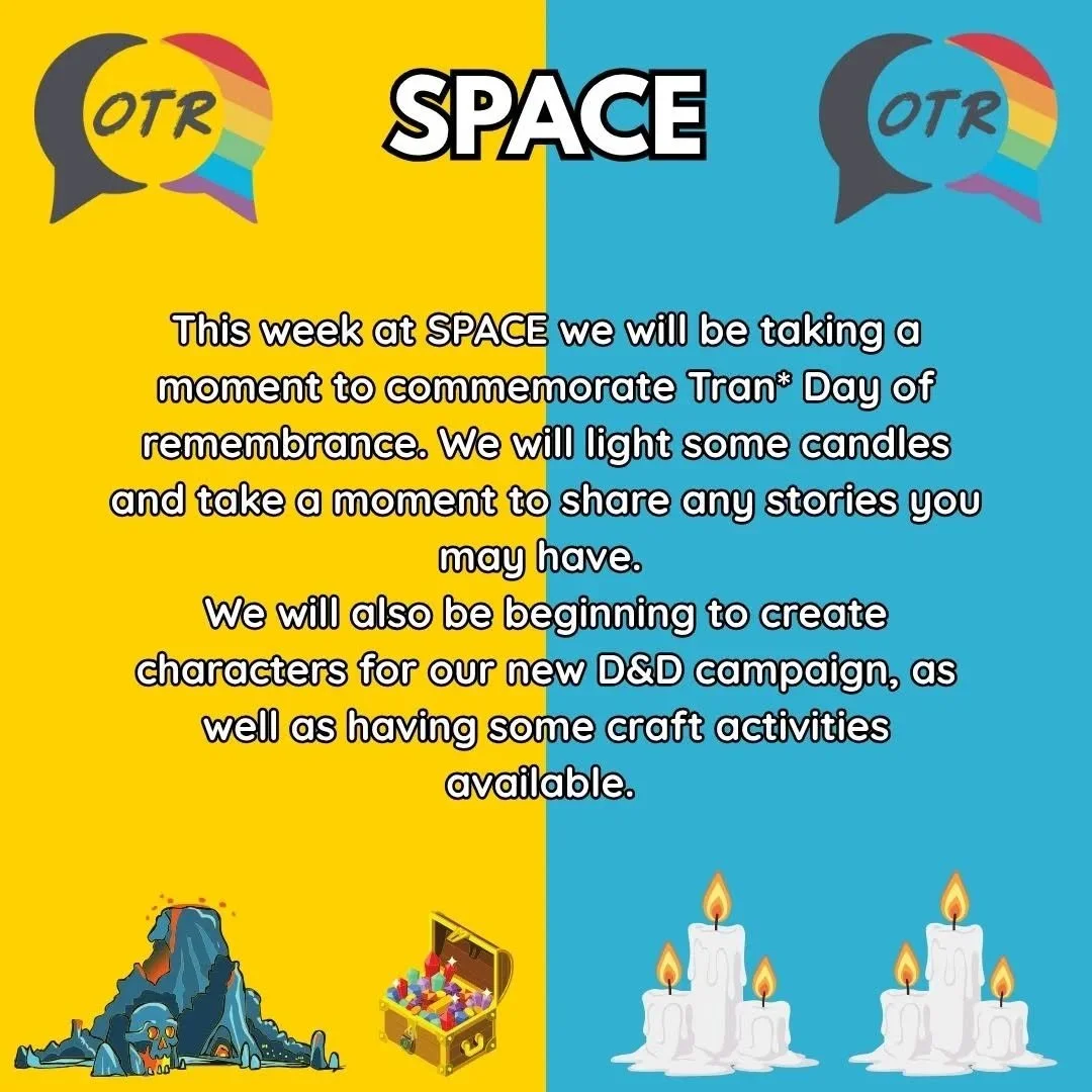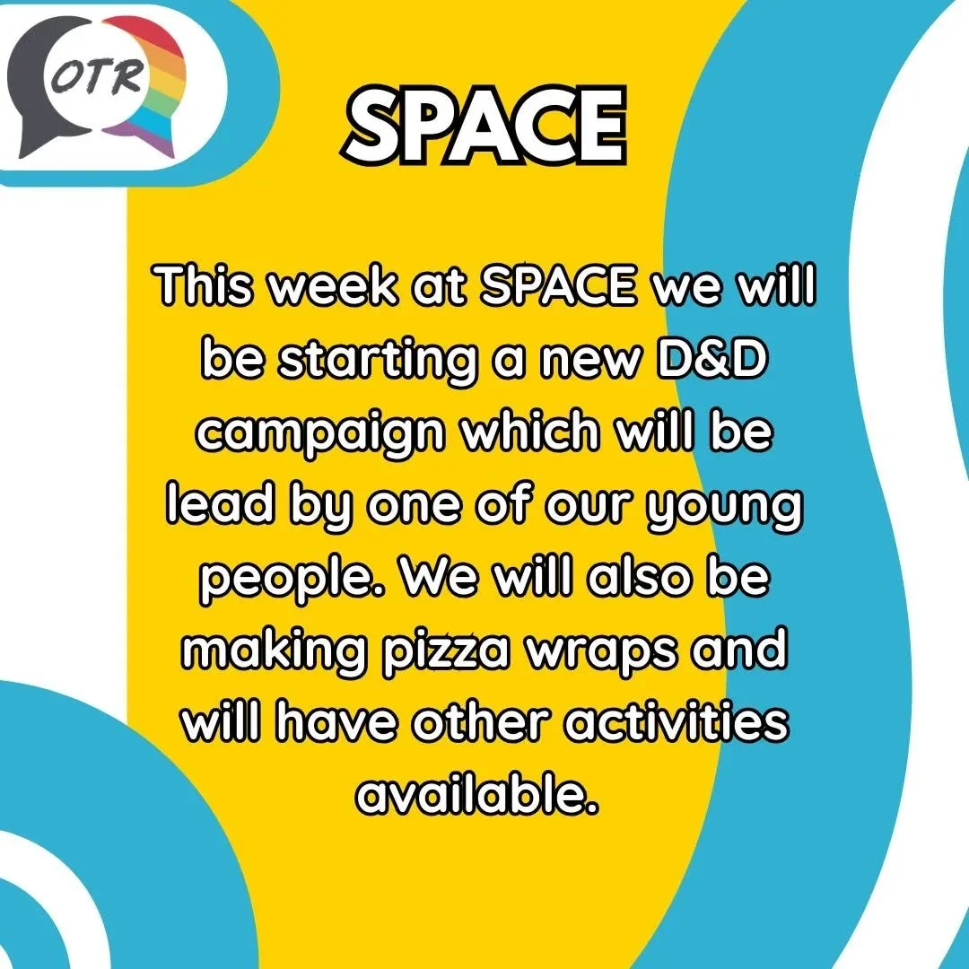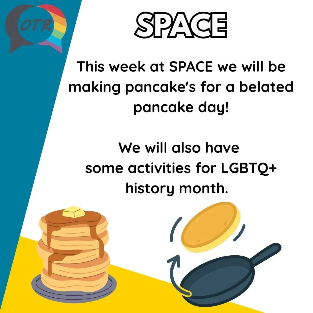SPACE is a safe environment that you can be yourself in and get information and support on LGBTQ+ issues. It is a chance to meet and make new friends. We chat, cook, have fun, play games, get involved with local community projects, raise awareness and celebrate key events on LGBTQ+ calendar we also invite guest speakers, go on trips and so much more!